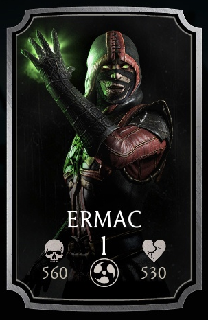 Ermac's passive makes his role to come in second. He becomes more effective when one of his teammates is knocked out. This effect does not stack twice. His 'Force Lift' attack can be totally nullified when blocked, resulting in extremely low damage and making timing crucial. His 'Soul Burst' attack hits long range and inflicts power drain. It can be used many times with his signature equipment, the Soul Medallion, hence, keeping the opponent from using special attacks.