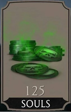 Souls are a currency that is used to buy most Gold Characters and Packs. They are also used to recharge characters' energy and buy through the 4th and 5th ladders of the challenge. They can be obtained by doing the daily objectives, completing the main ladders for the first time, from the Faction War rewards, from every five battles in Shao Kahn's Tower, and from the challenges. Also, obtaining extra copies of gold or diamond characters will sell for Souls, as well as Koins. It's appearance is a green skull in a circle.