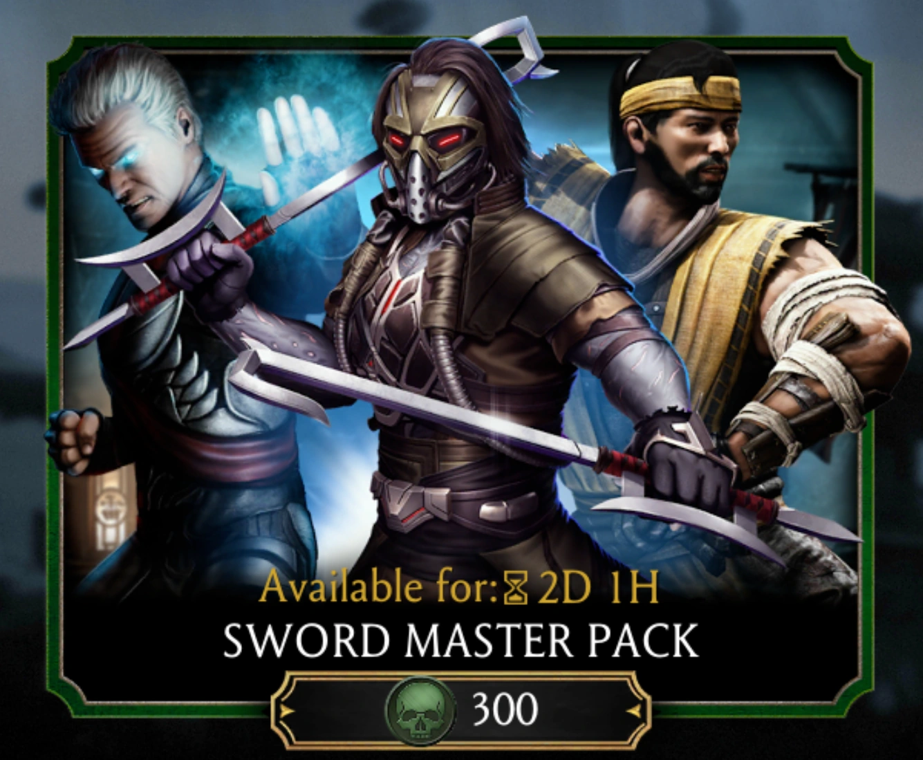 The Sword Master Pack was introduced in Update 2.2. It is a temporary pack that occasionally appears in the shop for 300 Souls.